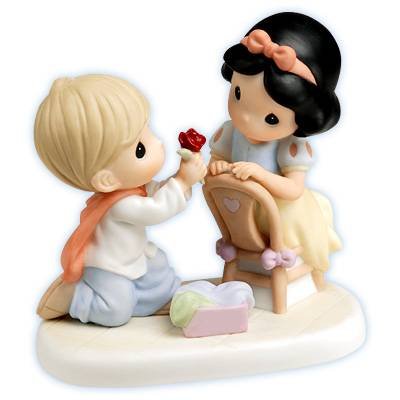- Precious Moments / Disney boy as prince charming kneeling and hading a rose to girl dressed as snow white