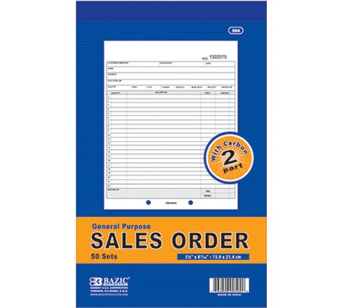 Bazic 2-Part Sales Order with Carbon, 5.56 x 8.43 Inches, 50 Sets (Case of 72)