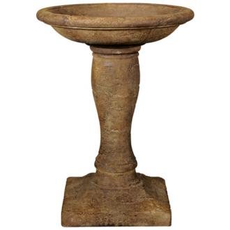 Henri Studios has been making fountains and bird baths for over 40 years. This bird bath features sturdy cast stone construction. Presented in a wonderful relic lava finish, this piece will provide years of outdoor decoration. The classic design is anchored by a substantial, square base which supports the gently contoured column. Bring more life to your yard by giving birds a place to gather. The size and weight of this bird bath may require freight shipping. Please note that this design ships for free, but because of its size and weight it may require freight curbside delivery. Each bird bath is made to order; allow extra time for delivery. Since each bird bath is custom made, there may be slight variations. Relic lava finish. Cast stone construction. Some assembly required. Each bird bath is made to order. By Henri Studios. 31" high. 16" wide.